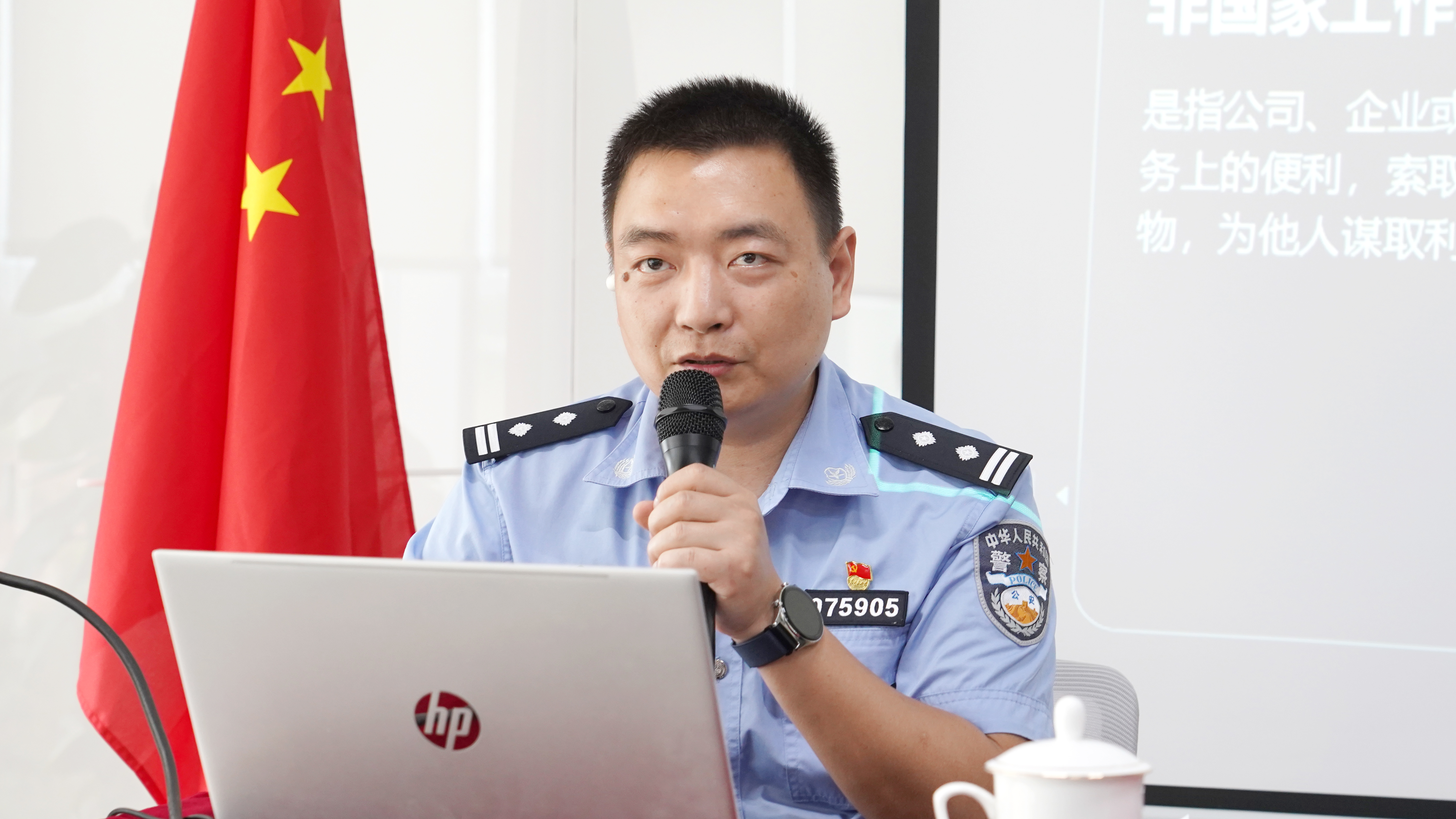 講座聚焦企業員工易觸及的高危刑事風險領域。李致富警官圍繞職務侵占罪、非國家工作人員受賄罪、挪用資金罪、侵犯商業秘密罪四大核心風險,深入剖析法律定義、構成要件及立案標準,并結合真實案例,以案釋法、以案示警,清晰劃定了行為“紅線”與法律“雷區”。課程內容直擊要害,警示意義深刻,有力強化了員工對廉潔從業與法律底線的敬畏之心。